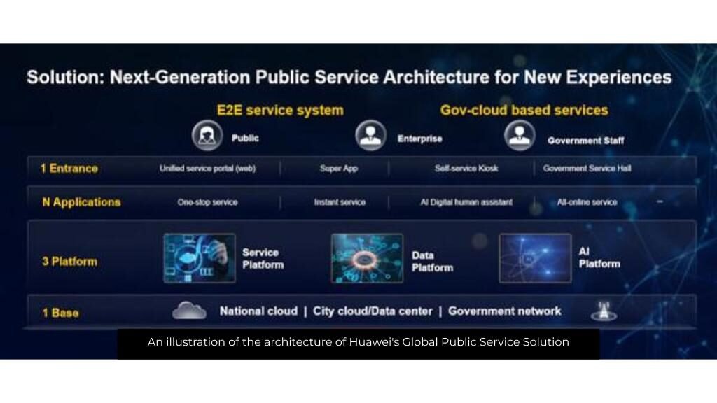 Huawei membayangkan perkhidmatan “sembang-kepada-proses” yang membolehkan rakyat menyelesaikan urusan pentadbiran hanya melalui interaksi dengan antara muka AI. Ini memperkemas interaksi kerajaan — rakyat boleh menyatakan keperluan mereka dalam bahasa semula jadi tanpa perlu berurusan dengan borang atau laman web. Pentadbiran awam juga mendapat manfaat melalui pengurangan kerja manual dan kelulusan yang lebih pantas — dengan Huawei menganggarkan bahawa ini boleh meningkatkan kepuasan rakyat dan kecekapan pengurusan kira-kira sekitar 30 peratus.